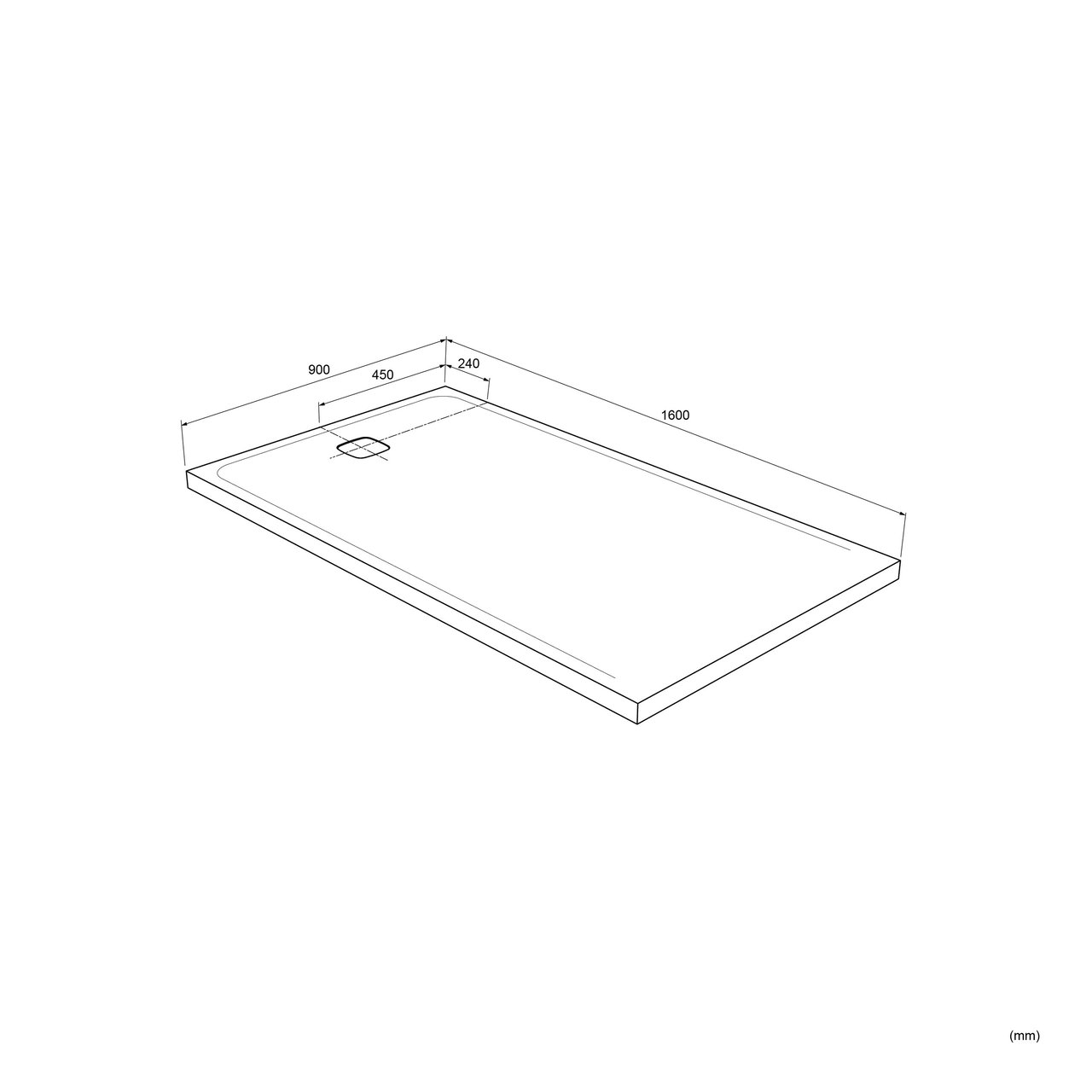 Diese Duschtasse ist mit einer Breite von 90 cm und einer Länge von 160 cm ausgeführt.