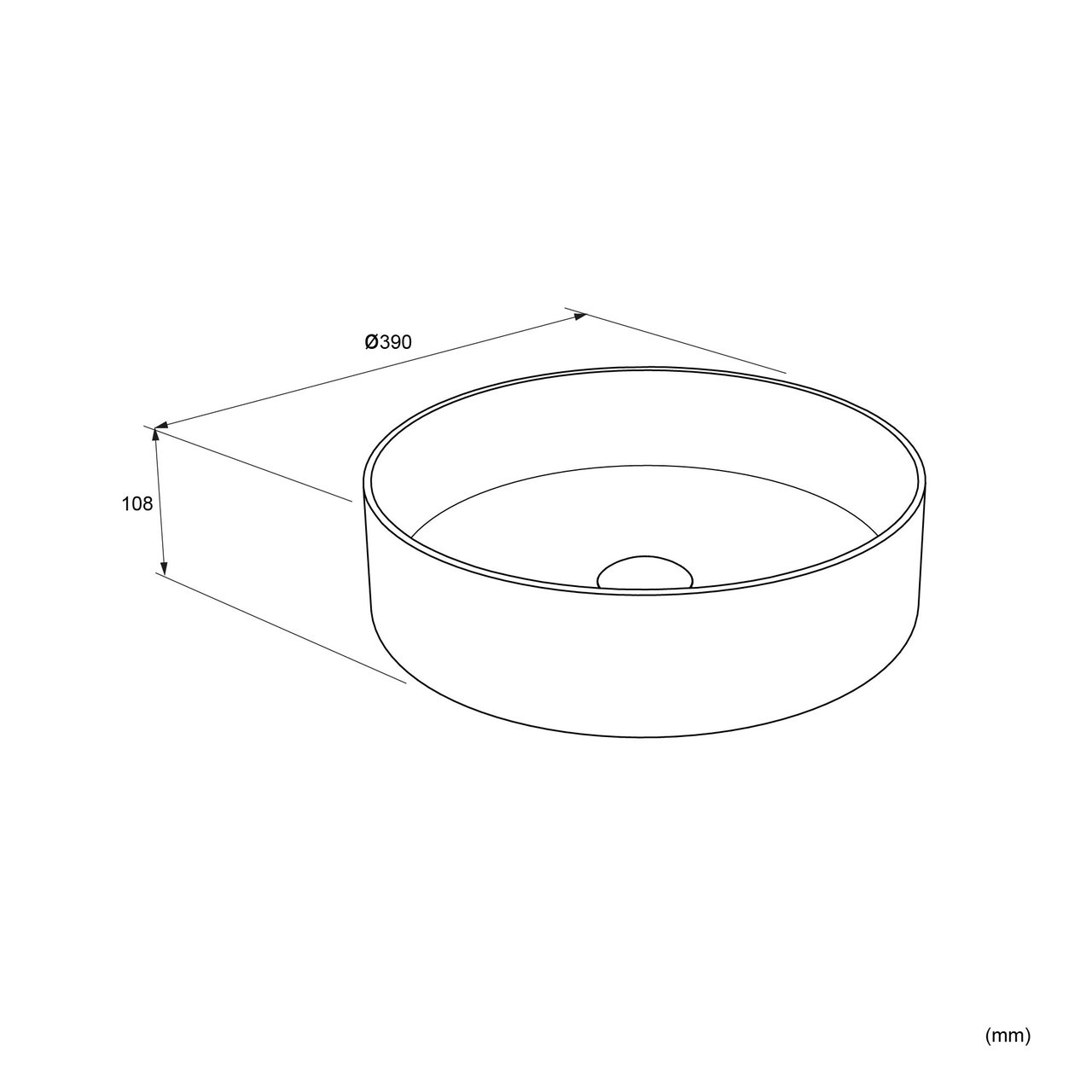 Dieses erstklassige Waschbecken Solid Surface hat einen Durchmesser von 39 cm und ist 10,8 cm hoch.Dieses wunderschöne Waschbecken in Dune matt ist ein Blickfang in Ihrem Badezimmer.