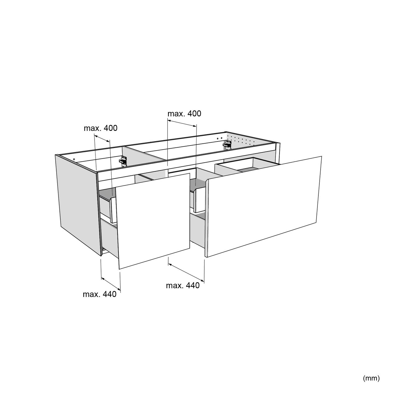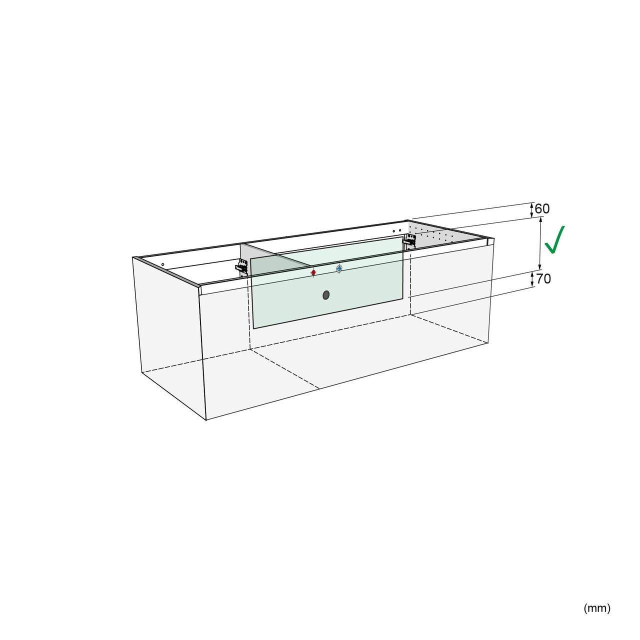 Sicherheitshinweis: Es wird dringend empfohlen, ein Santeg-Stützprofil zu verwenden, um alles perfekt zu montieren und den hängenden Schrank optimal zu unterstützen.