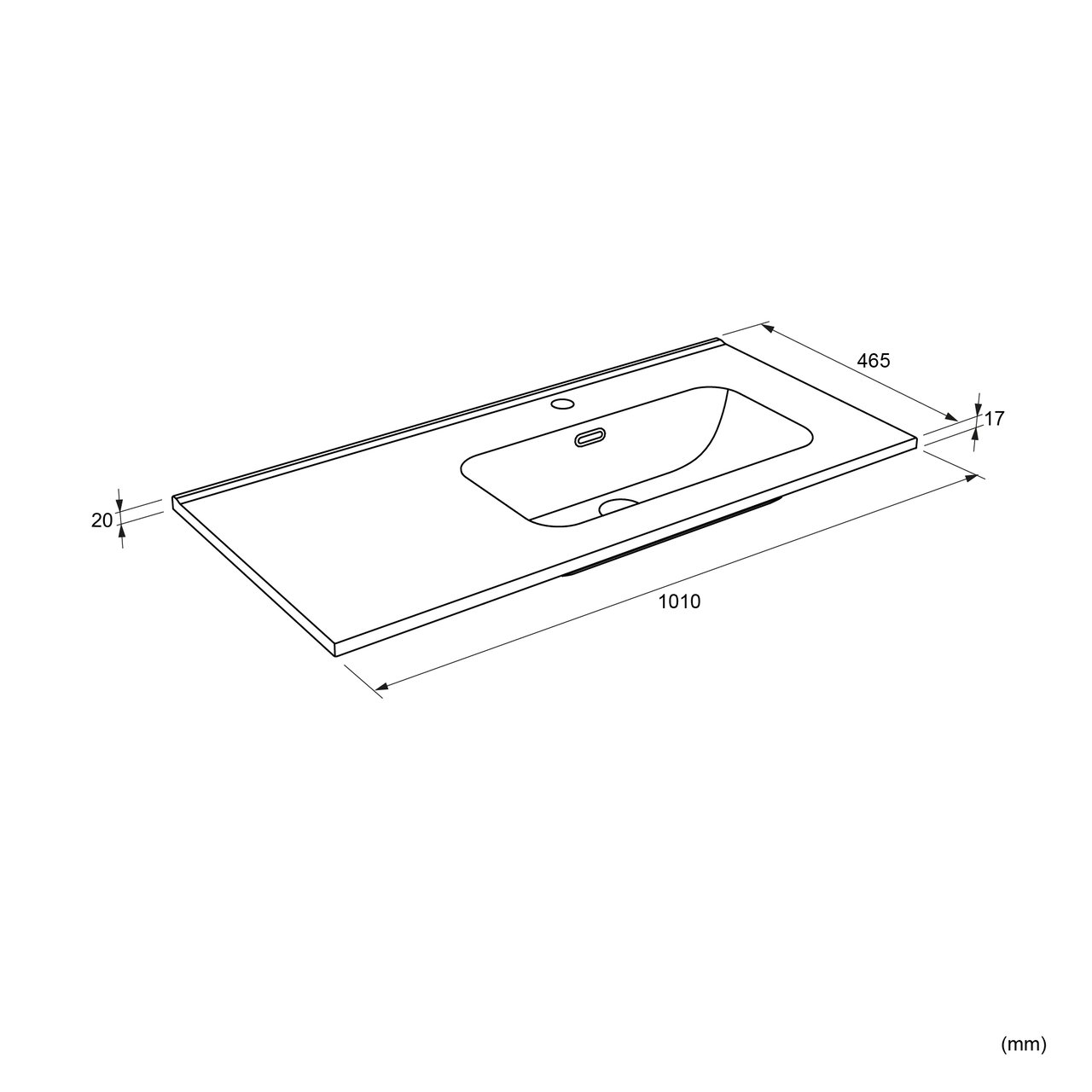 Dieses erstklassige Porzellan-Waschbecken mit integriertem Waschbecken ist 100 cm breit, 46 cm tief und hat eine Randhöhe von 2 cm. Dieses schöne matt weiße Waschbecken ist der Blickfang in Ihrem Bad.