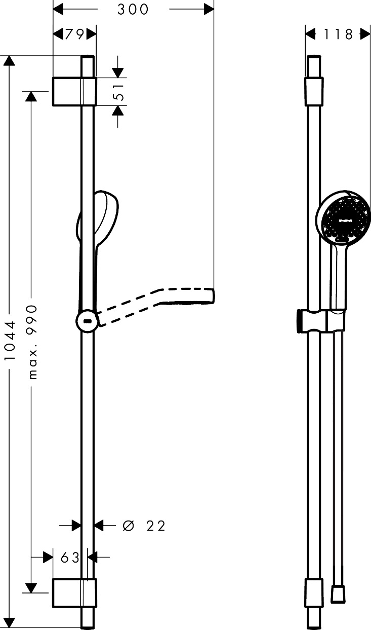 + Höhenverstellbare Handbrausehalterung mit Push Schieber