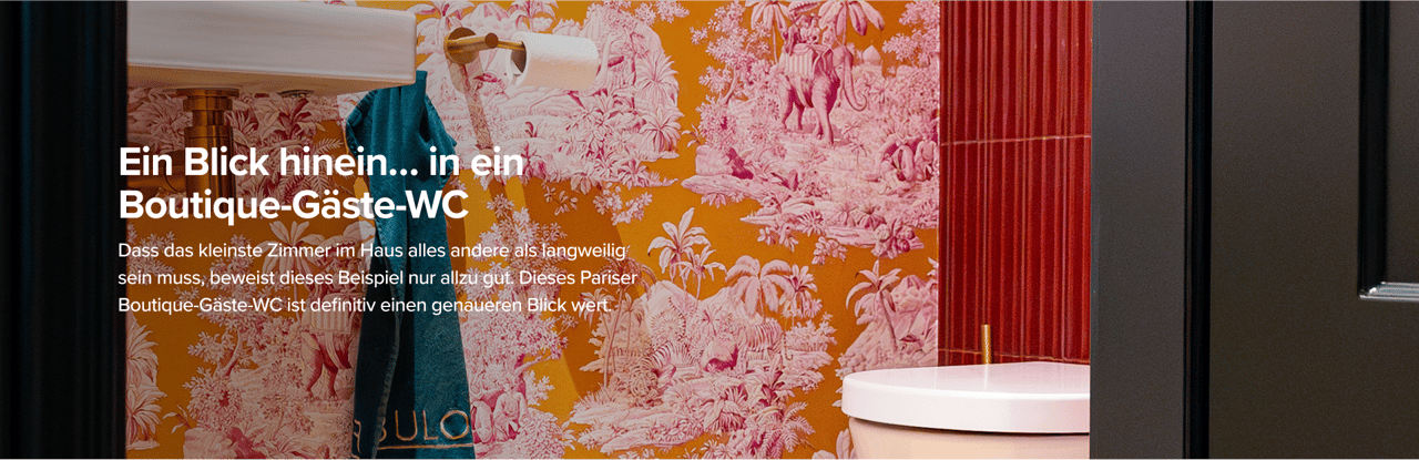 Denkst Du bei einem Gäste-WC sofort an eine weiße Toilette in einem kühlen, weißen Raum? Nun, bei diesem WC ist genau das Gegenteil der Fall! Hier hat man sich für wunderschöne bordeauxrote Fliesen entschieden, kombiniert mit einer passenden Tapete. Die Luca Varess Perola Betätigungsplatte in Brushed Gold fügt sich perfekt in diese warme und elegante Farbwelt ein.