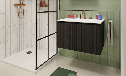 Diese Empfehlung klingt banal – funktioniert aber: Wähle kompakte und flache Badmöbel.