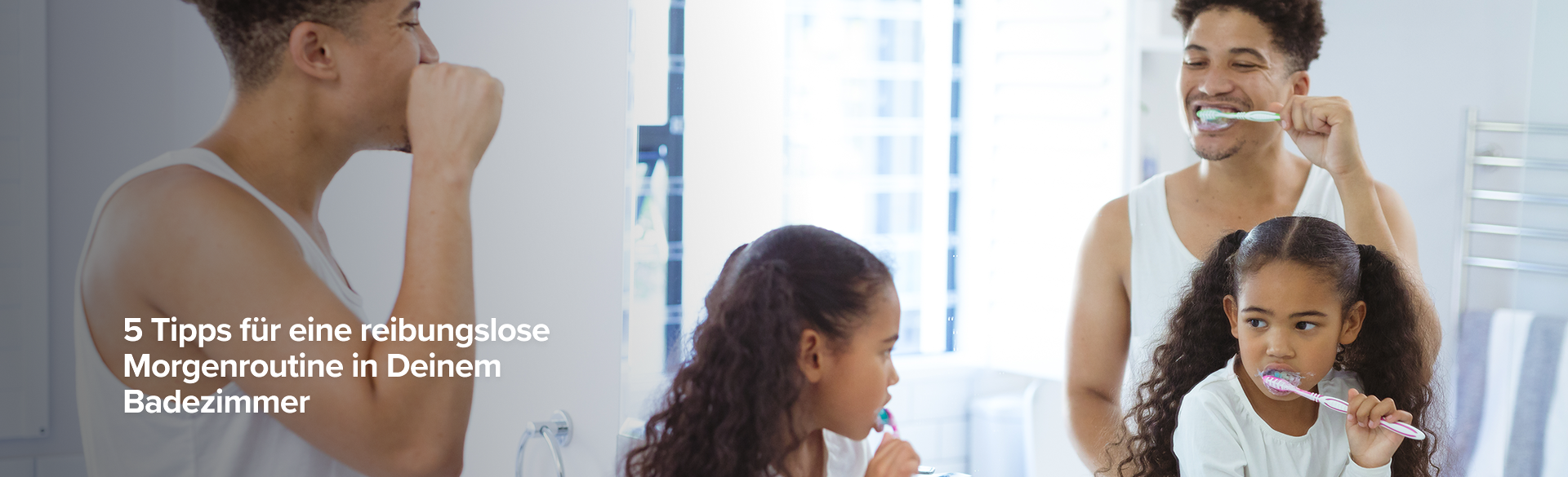 „5-Sekunden-Regel" für Dein Waschbecken: Alles, was Du in 5 Sekunden wegräumen kannst, sofort verstauen. So bleibt Dein Bad visuell ruhig und organisiert – und Du hast auch im Kopf Ruhe.