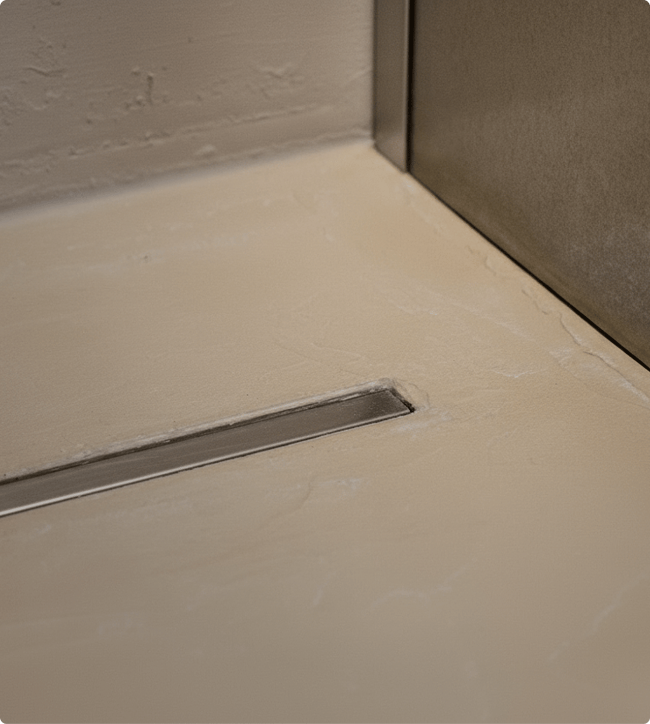 Kontrolliere regelmäßig, ob Silikonfugen, Badfliesen und Zementfugen in gutem Zustand sind und lasse Schäden sofort beheben. Prüfe auch, ob das Wasser gut abläuft, und beseitige, wenn nötig, Verstopfungen im Duschablauf.