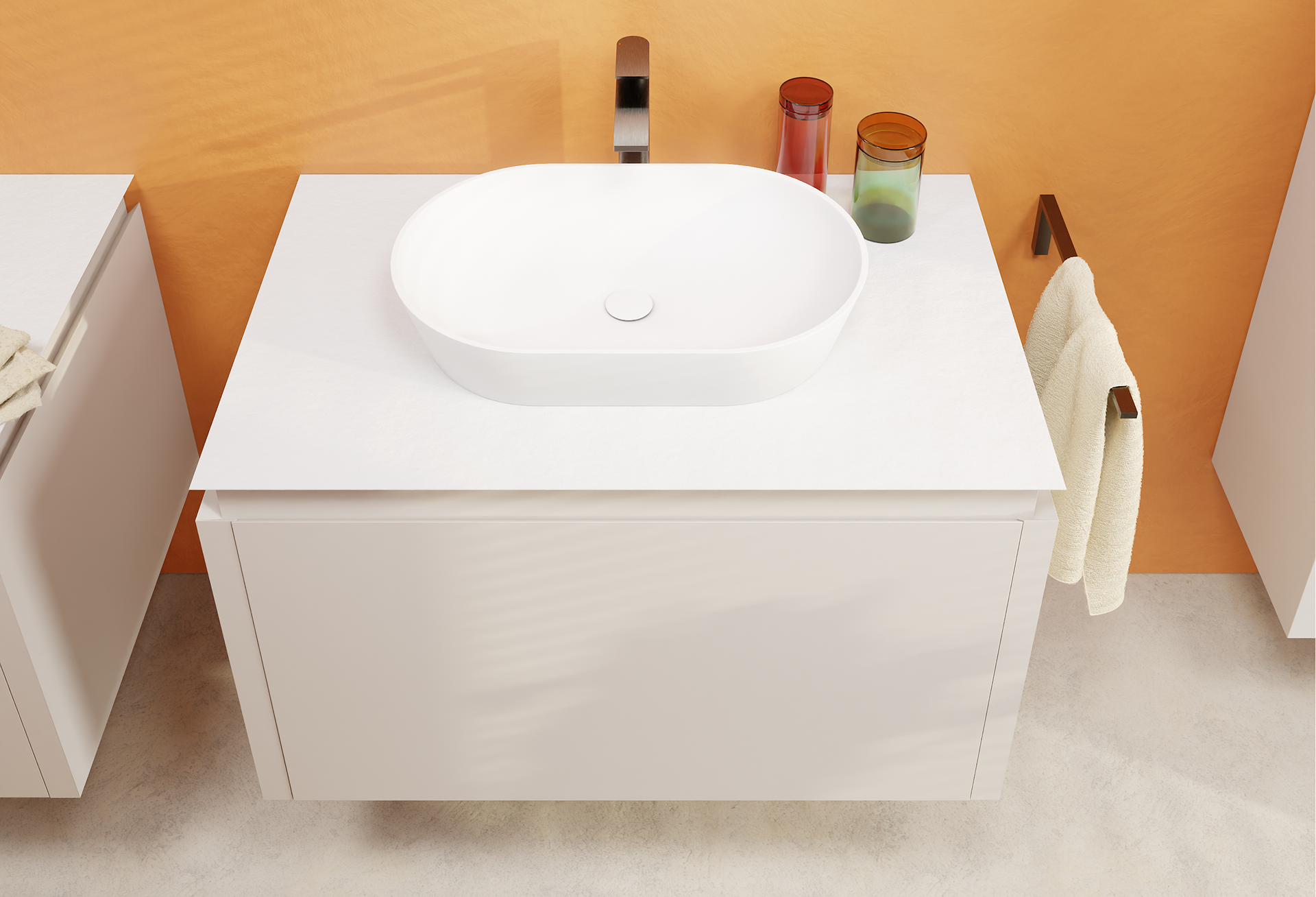 ✔ Die ovale Balmani Still-Aufsatzwaschschale in Matweiß verleiht dem Raum eine feine Leichtigkeit