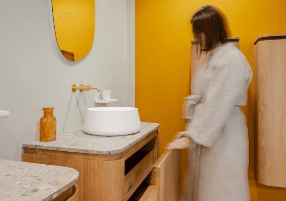 ✔ Organische Formen – Runde Spiegel, sanfte Linien und fließende Konturen sorgen für ein beruhigendes Ambiente.