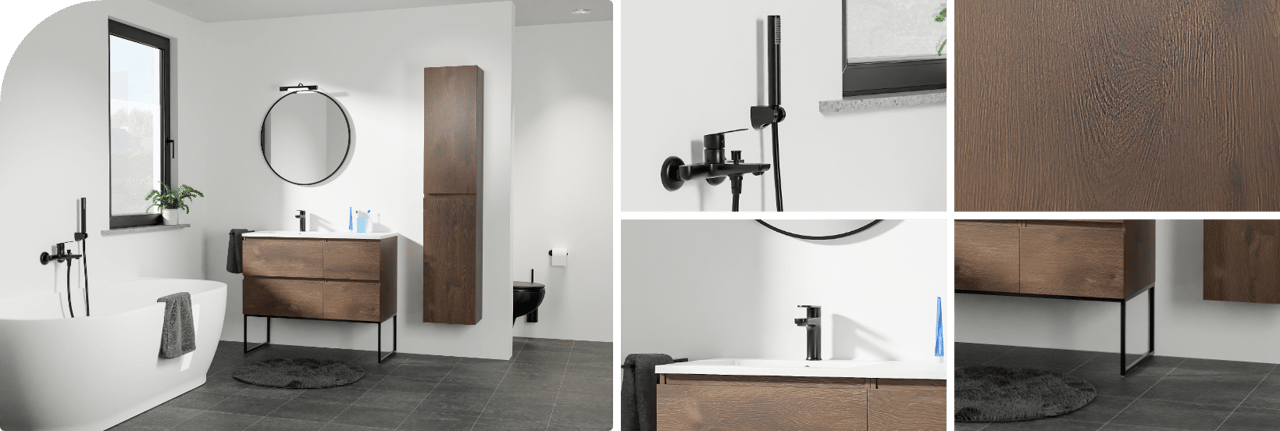 Dieses Badezimmer zeigt, dass Minimalismus und markante Designelemente perfekt miteinander harmonieren. Ein Raum, der Ruhe und Charakter ausstrahlt – und jeden Tag aufs Neue begeistert.