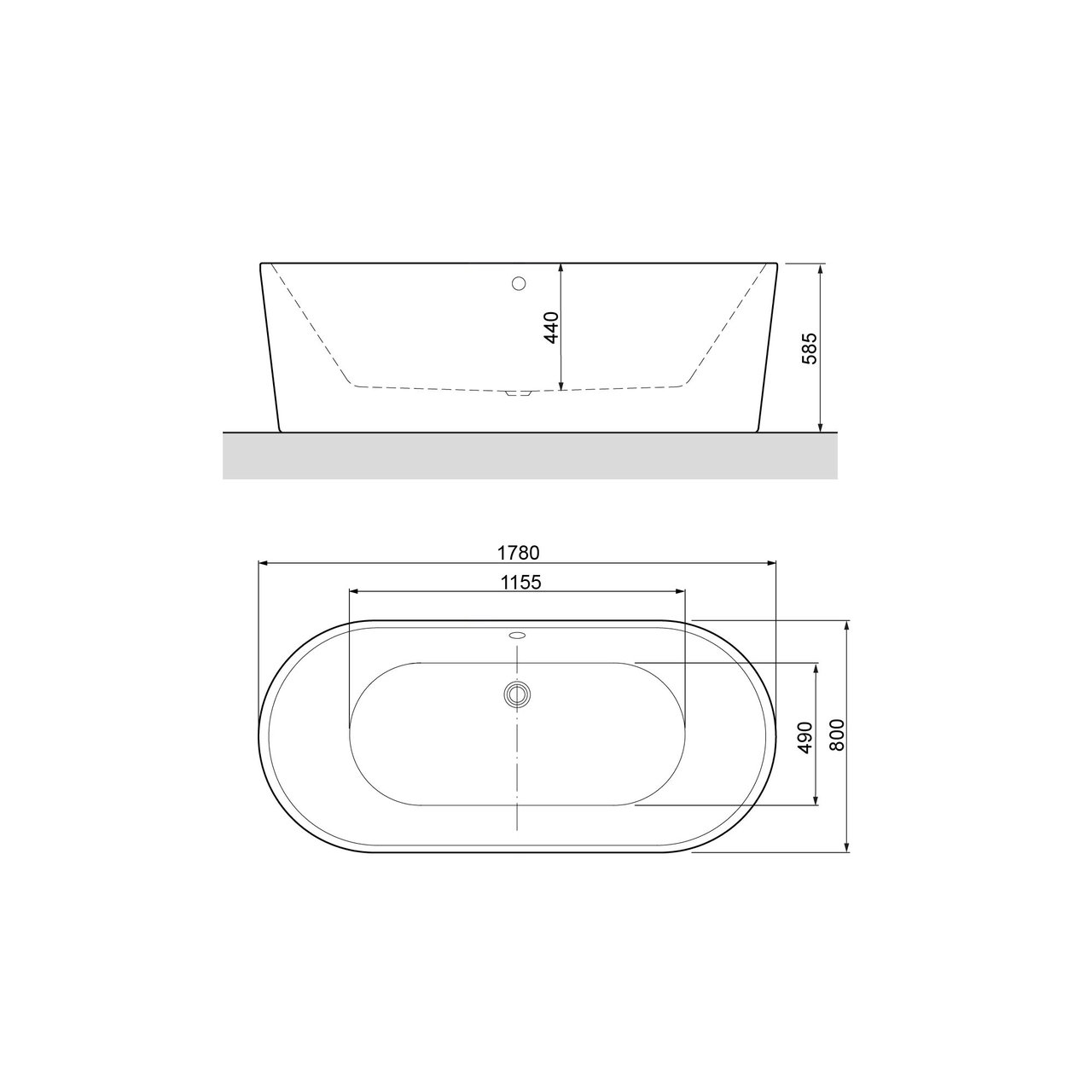 | Form der Badewanne | Oval | |