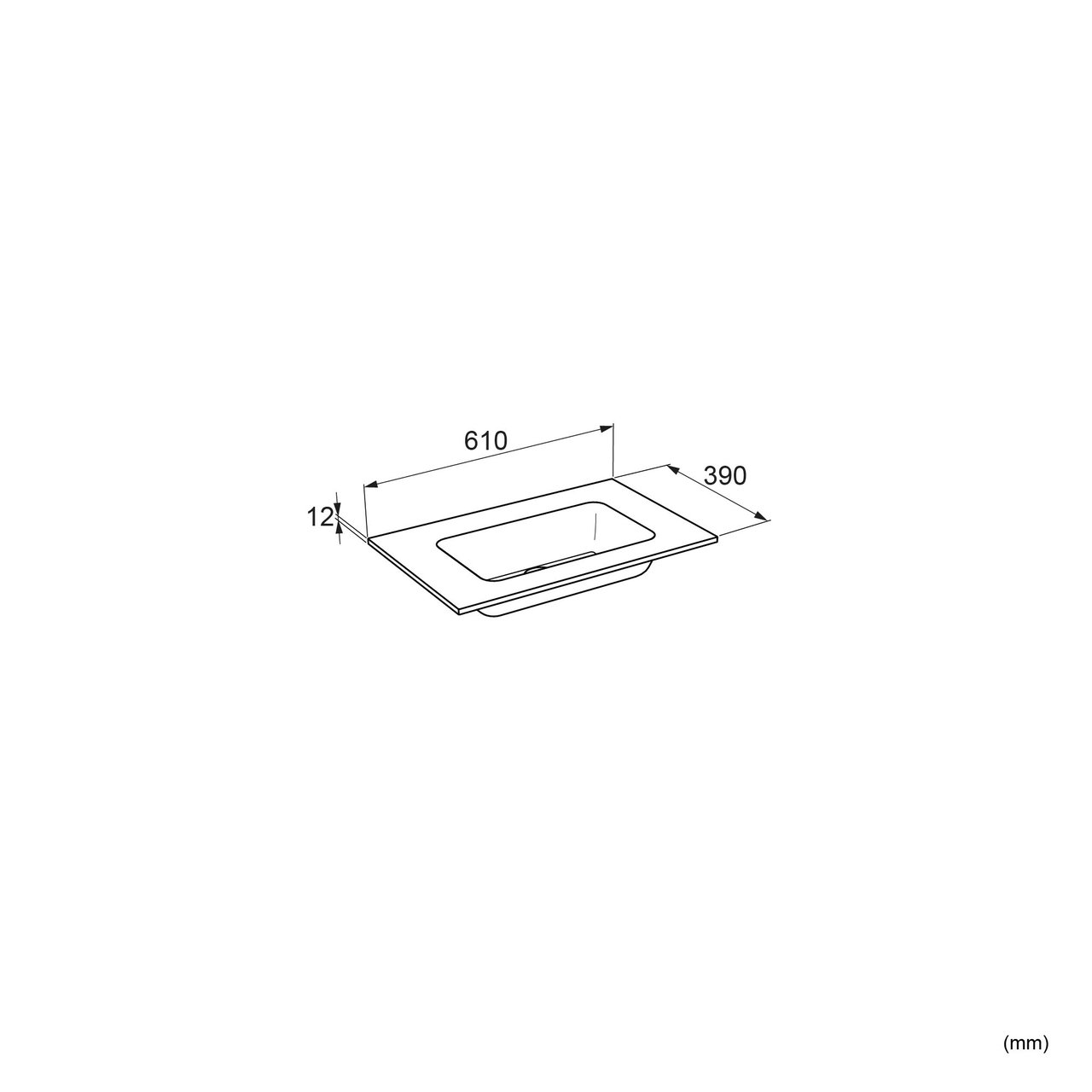 Dieser Waschtisch ist auch in anderen Abmessungenund in einer Variante mit Randhöhe 9 cm erhältlich.