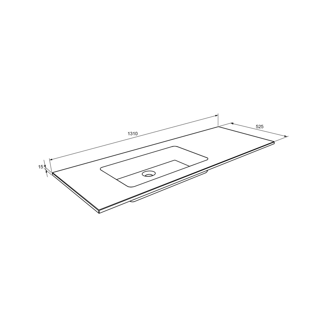 | Maße | 130 x 52 cm asymmetrisch links Schrankkombination 35 cm | |