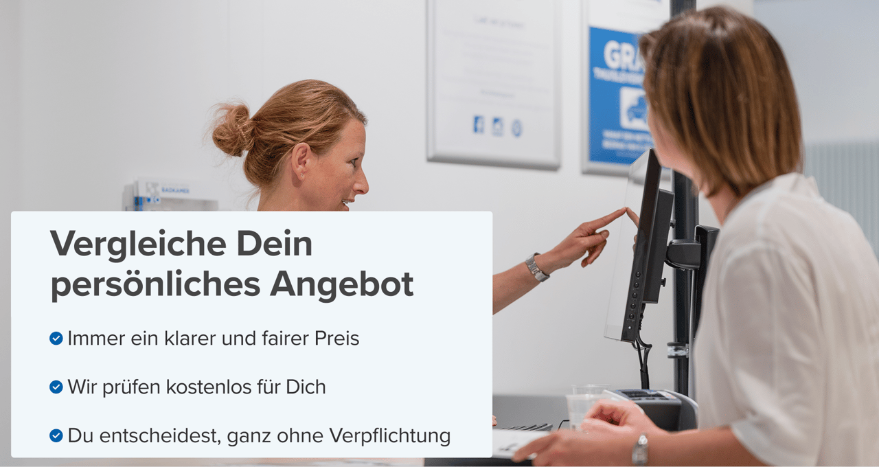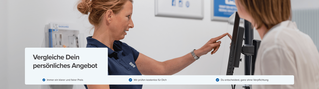1. Fülle das Formular online aus oder besuche eine Badausstellung mit einem bestehenden Angebot in der Tasche.