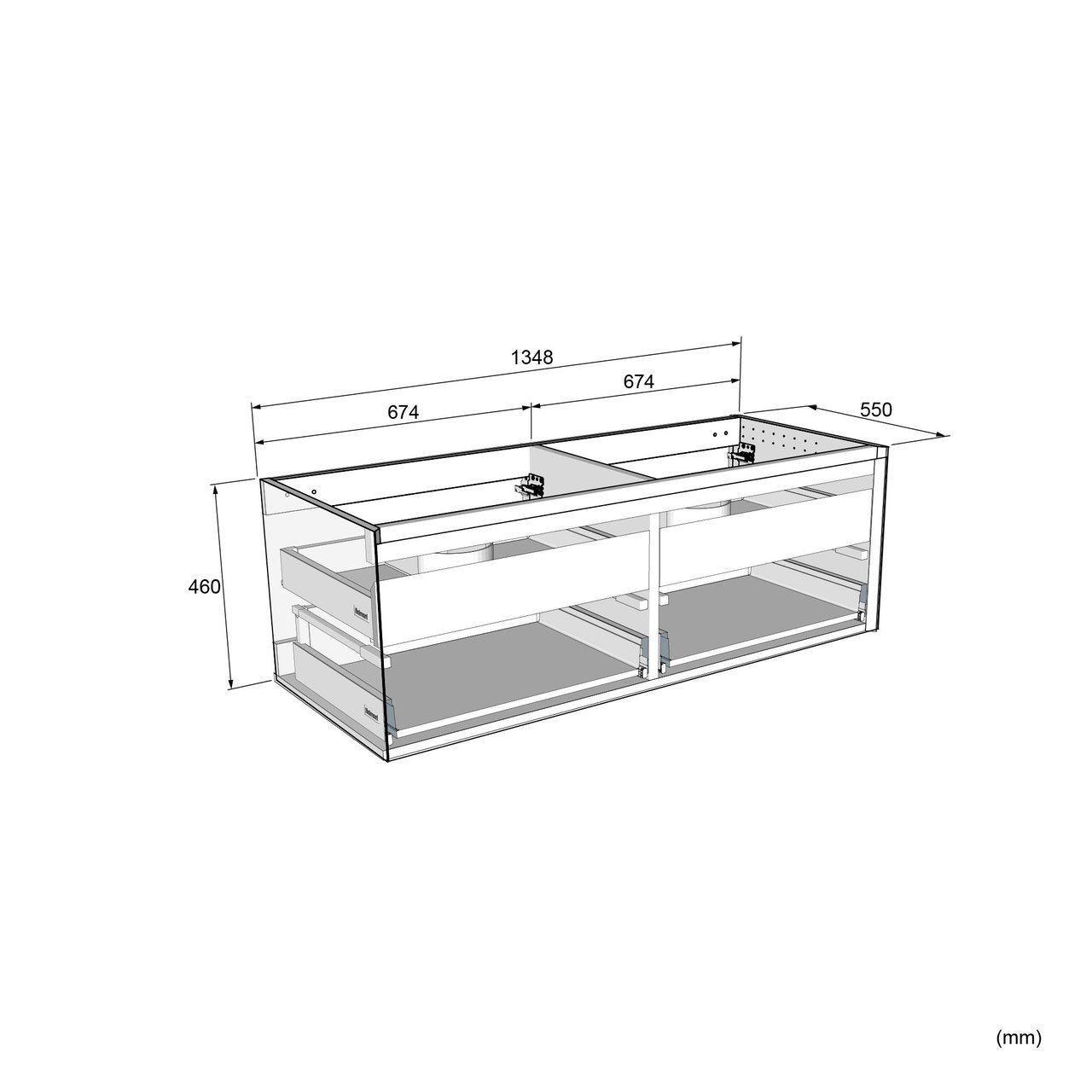 Ce sous-meuble de lavabo en MDF peint de première classe avec deux tiroirs avant et deux vastes tiroirs a une largeur de 135 cm, une hauteur de 46 cm et une profondeur de 55 cm. Cette armoire flottante en gris pierre convient à toute salle de bains grâce à sa finition élégante.