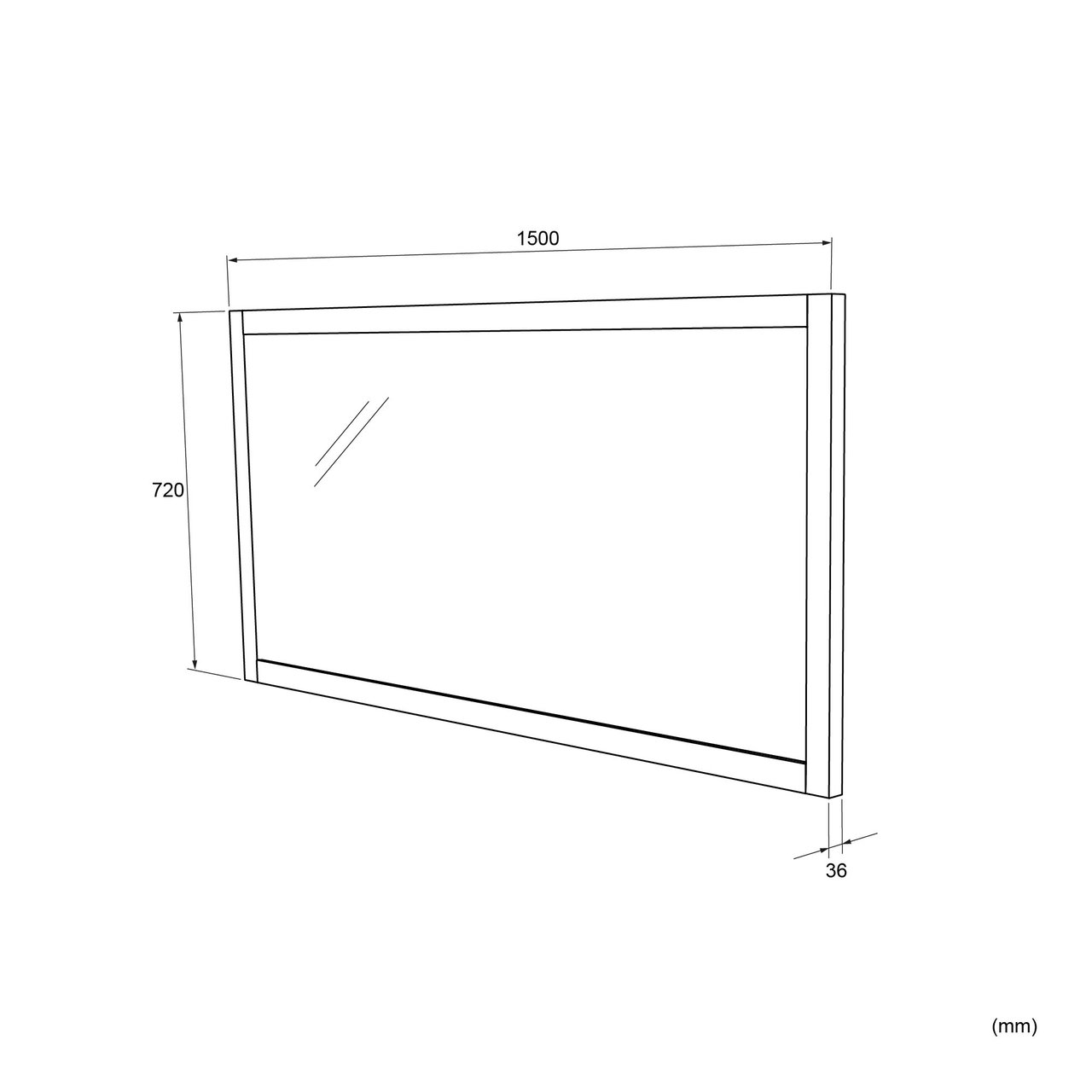 Ce panneau miroir rectangulaire de qualité fait 150 cm de large et 72 cm de haut. Le miroir avec bord en chêne convient parfaitement dans une salle de bains rurales grâce à son aspect robuste.