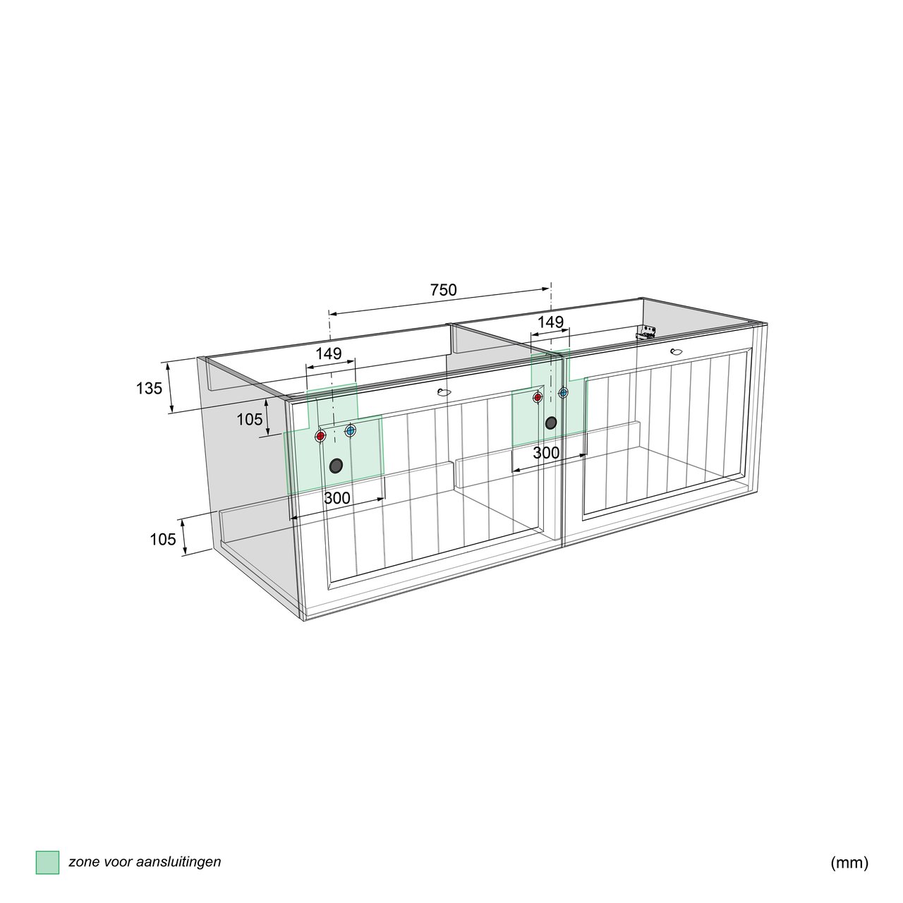 Conseil de sécurité : un profilé de soutien Santeg est fortement recommandé pour une installation parfaite et pour soutenir de manière optimale l'armoire suspendue.