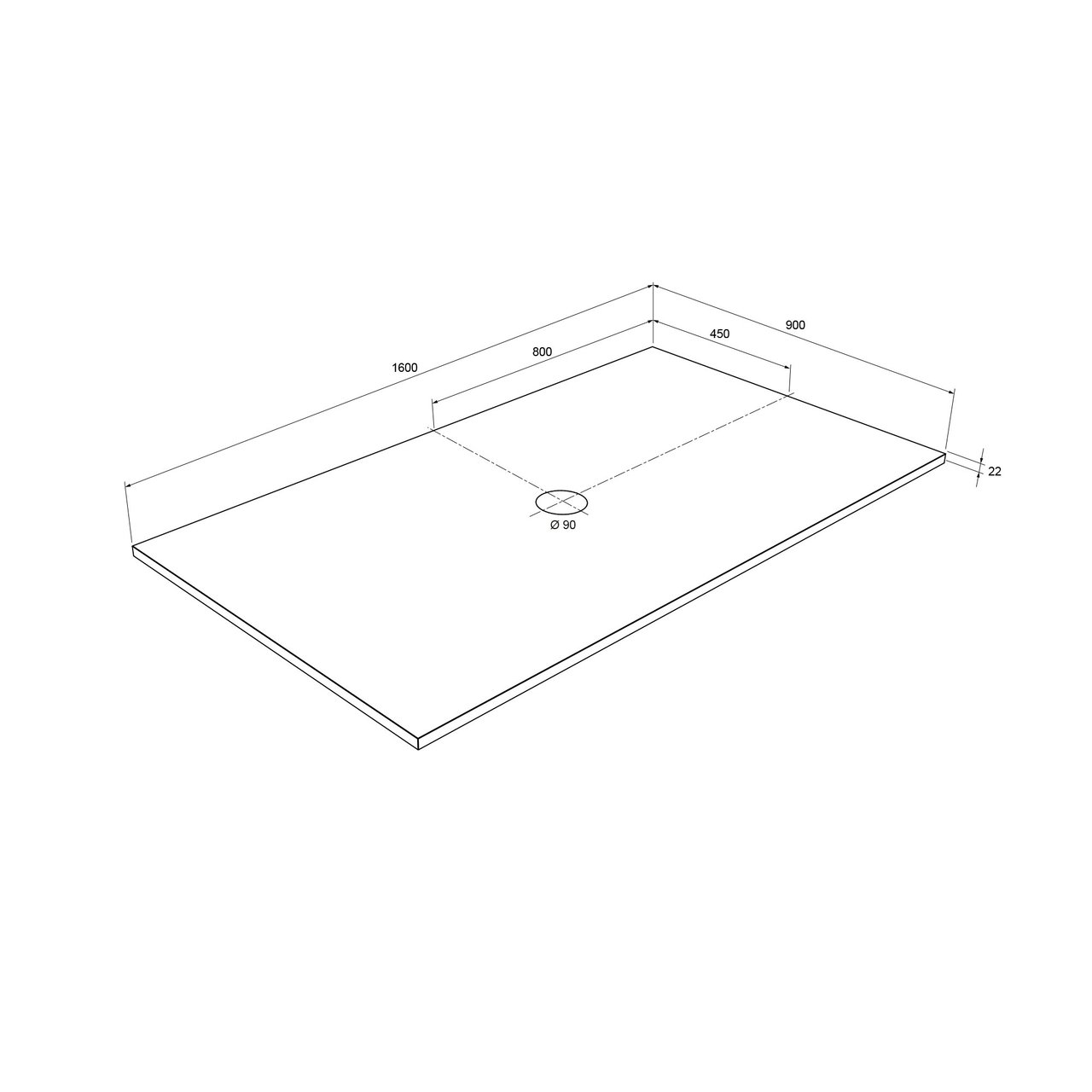 Ce receveur de douche mesure 90 cm de large et 160 cm de long.