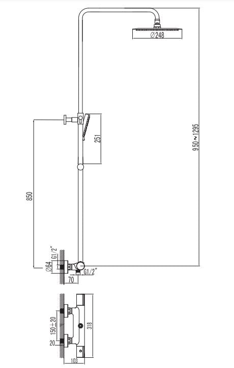 | Possibilité de réglage point de fixation barre de douche | 85 centimeter | |