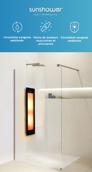 Très populaire, le Sunshower est un ajout luxueux à votre douche ! Un Sunshower émet un rayonnement infrarouge réchauffant et/ou une faible dose de lumière UV, bénéfique notamment pour les muscles et la circulation sanguine. Mais ce n'est pas tout ! Un Sunshower présente de nombreux autres avantages...
