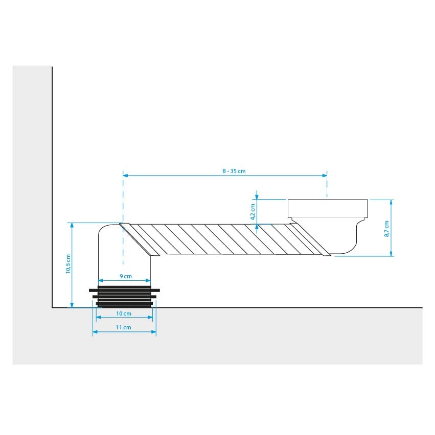 Cette pièce de raccord en PVC blanc est adaptée à un WC à poser et suspendu et elle a un diamètre réglable de 9, 10 ou 11 cm.La pièce de raccord sert à déplacer facilement le raccordement par le sol.