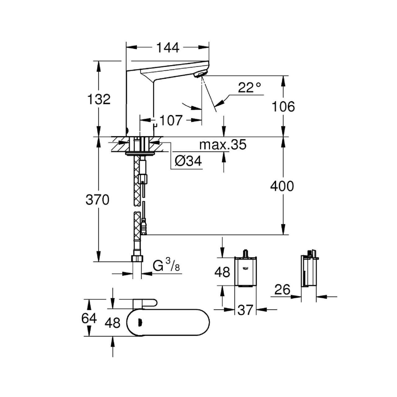 Épaisseur maximale de tablette pour l'installation du robinet | 30 mm | |