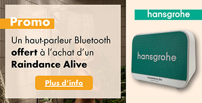 Achetez un showerpipe Raindance Alive de hansgrohe participant à l’action sur www.x2o.be ou dans l’un de nos showrooms entre le 1er janvier et le 31 mars 2026 et recevez un haut-parleur Bluetooth hansgrohe, livré chez vous.