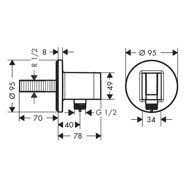 Type de pièce | Support mural douchette avec coude de raccordement | |