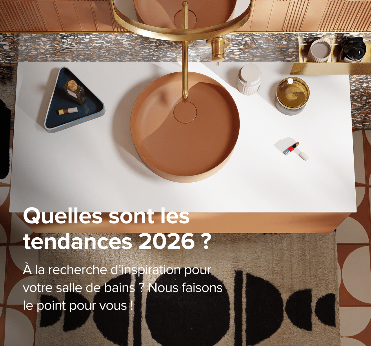 En 2026, même vos produits de salle de bains se parent de couleur. Associez la tablette Balmani Moon en Greige Terrazzo à la vasque Cotto Balmani Fiyi pour un effet coup d’œil garanti. Nos meubles de salle de bains vont bien au-delà des looks bois : dans des collections comme Linie, Storke et Balmani, vous trouvez aussi des couleurs fraîches comme le terracotta et le vert olive. Laissez-vous inspirer par cette tendance et mettez de la couleur dans votre salle de bains !