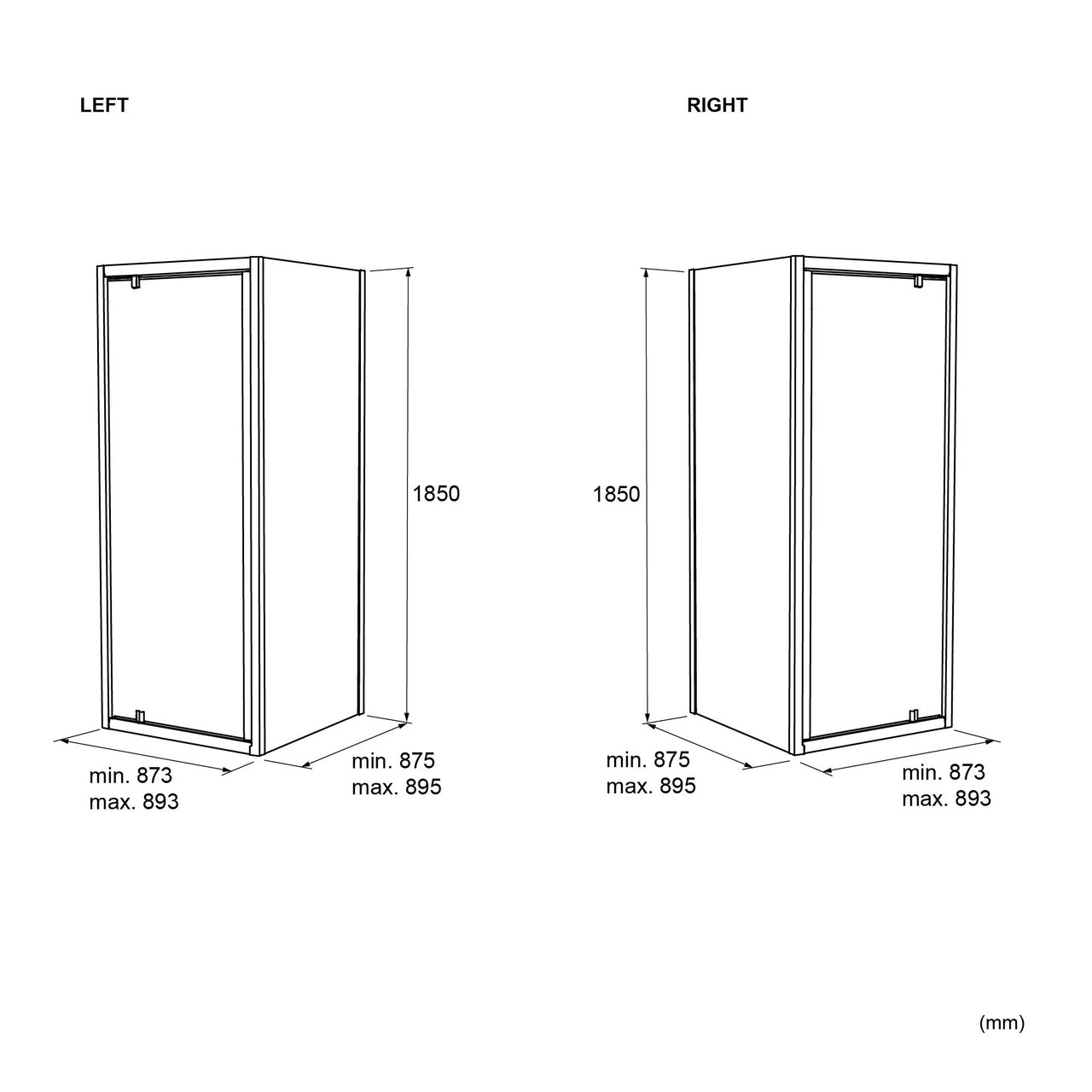Possibilité de réglage largeur porte de douche | 87,5 - 89,5cm x 87,5 - 89,5cm | |