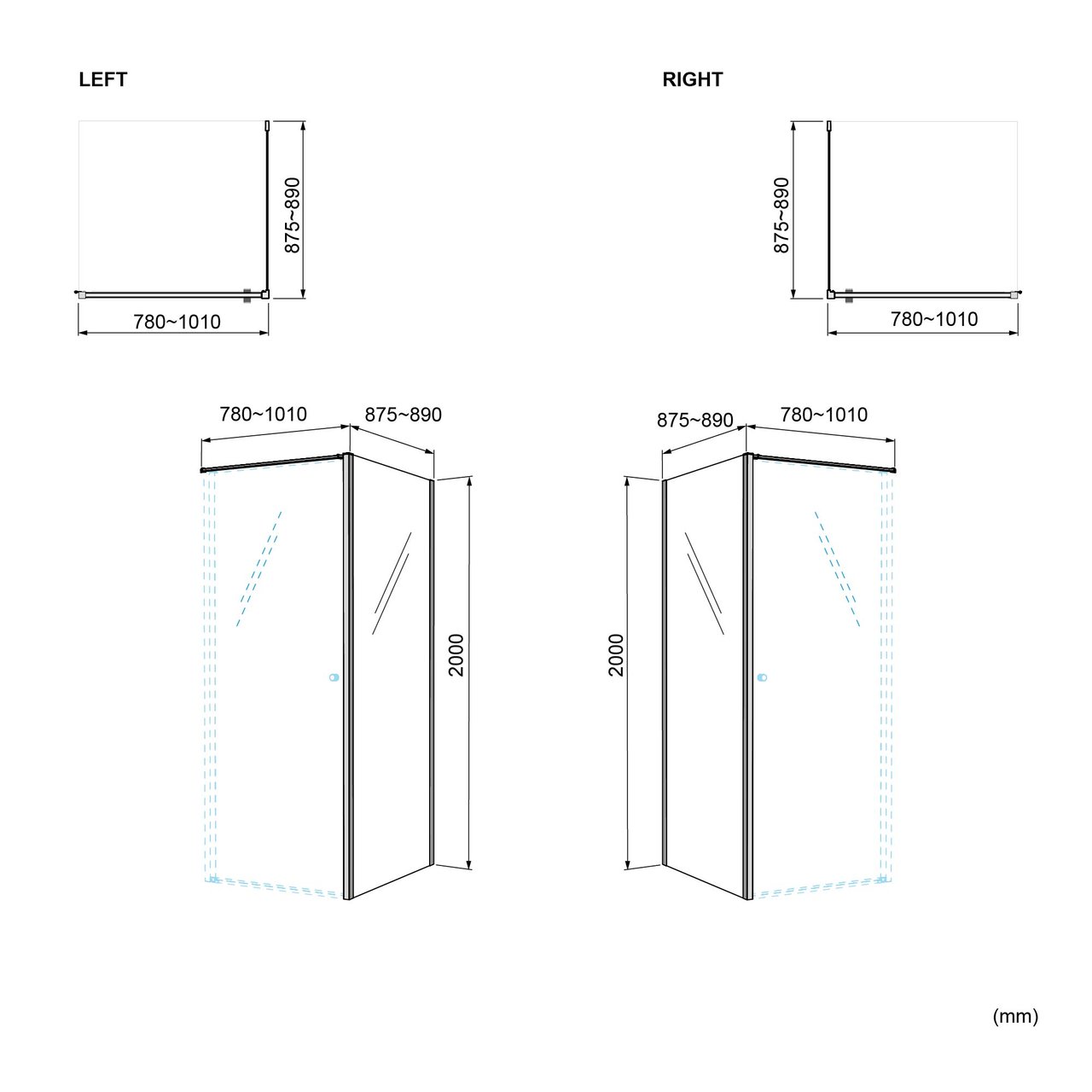 Cette paroi latérale de douche mesure 90 cm de large et 200 cm de haut.
