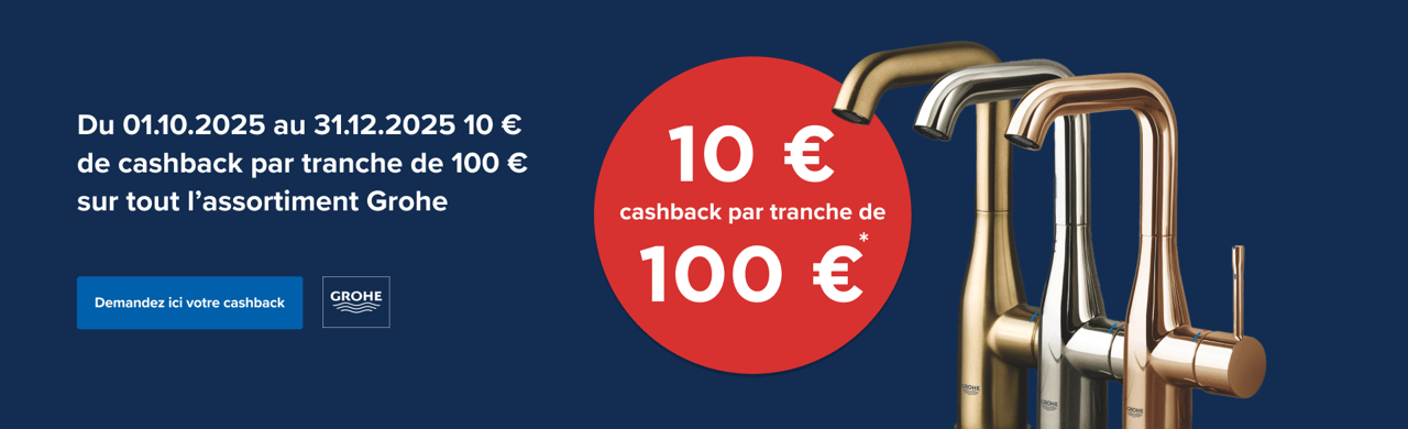 L’automne est le moment idéal pour donner un coup de fraîcheur à votre salle de bains. Et c’est encore plus intéressant maintenant : pour tout achat de robinets Grohe chez X²O Salles de bains, vous recevez temporairement 10 € de cashback par tranche d’achat de 100 € avec un maximum de 500 € de cashback !