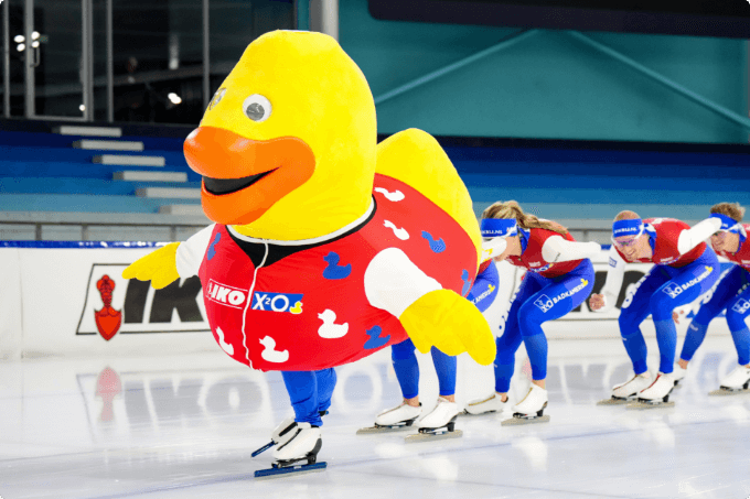 Il faut un peu d'entraînement, mais ça vaut le coup... Cette saison, nous allons fouler la glace avec une toute nouvelle combinaison de patinage. Pour les patineurs, mais aussi pour Ducky !