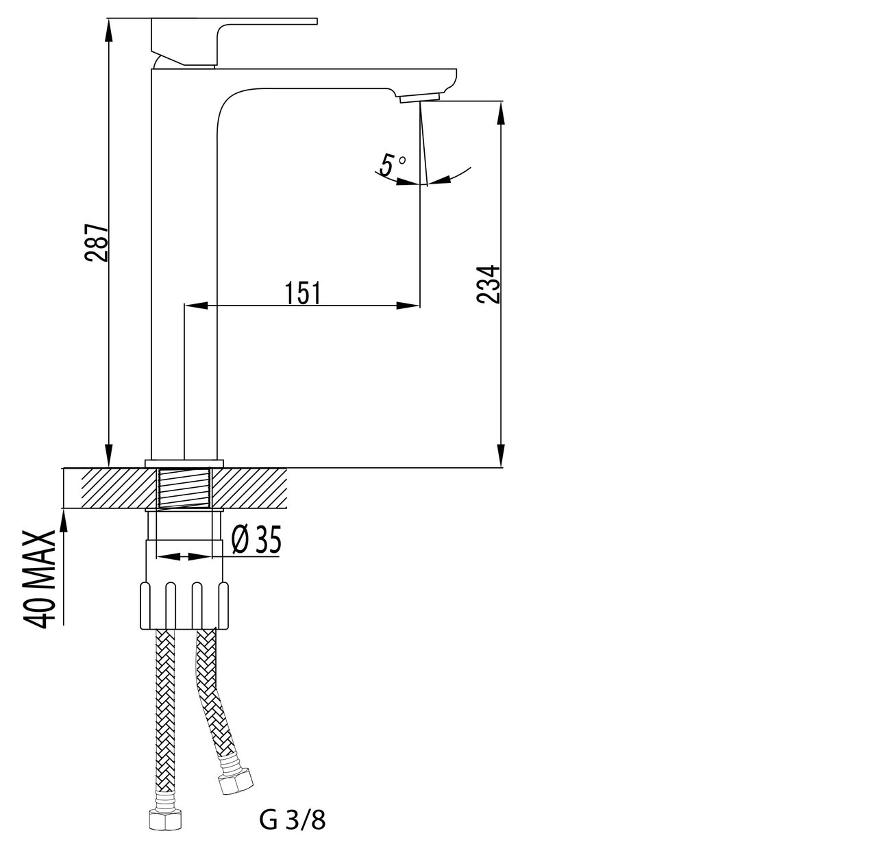 Épaisseur maximale de tablette pour l'installation du robinet | 40 mm | |