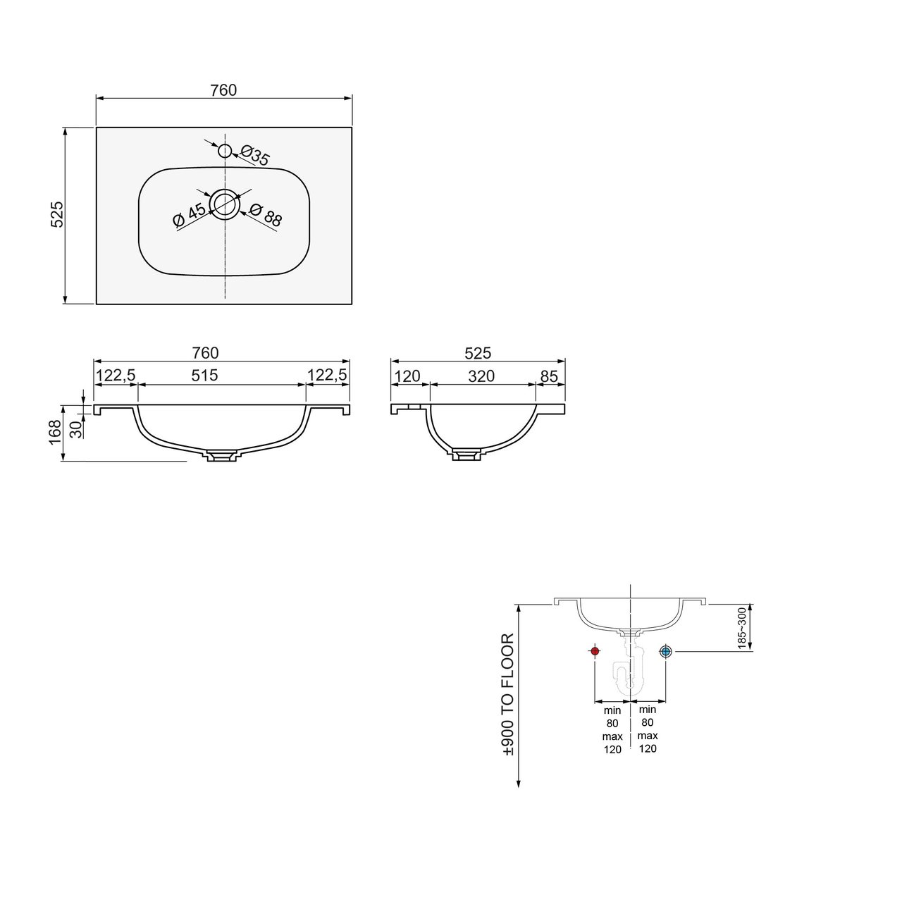 Vasque simple ou double | Plan simple | |