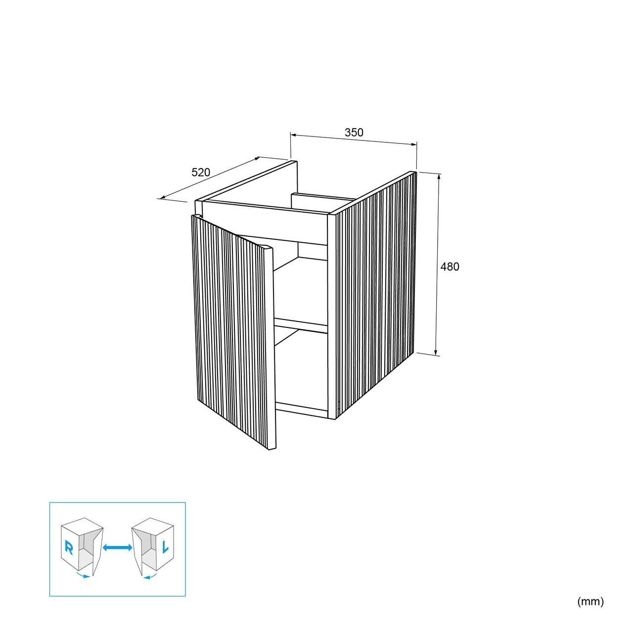 Ce meuble sous lavabo en MDF avec feuille PVC a une largeur de 35 cm, une hauteur de 48 cm et une profondeur de 52 cm. Cette armoire flottante en chêne noir convient à toute salle de bains grâce à sa finition élégante.