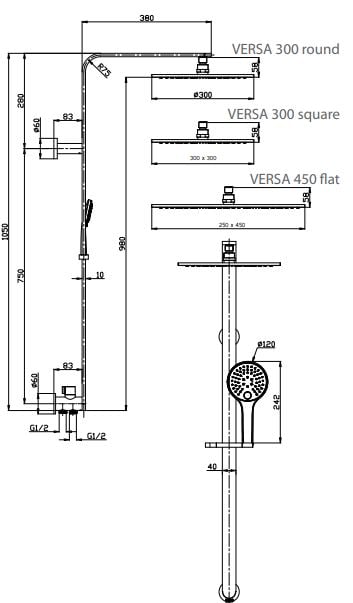 Ce kit de douche pluie existe également avec une douche pluie carrée.