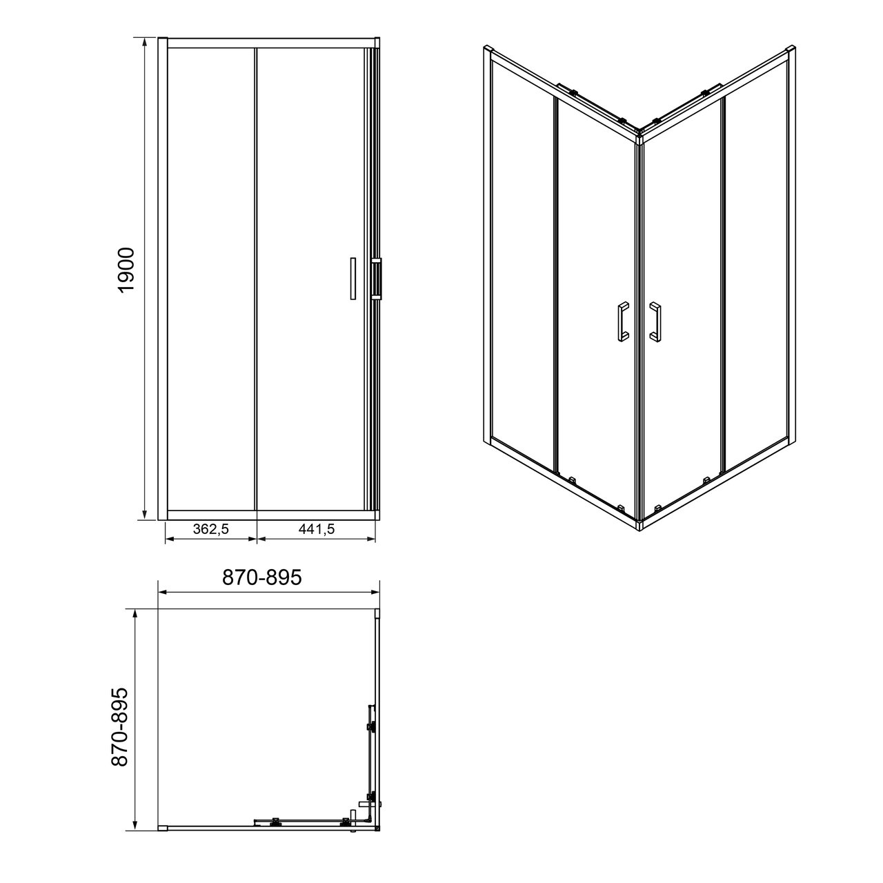 Regelbereik breedte douchedeur | 87 - 89,5cm x 87 - 89,5cm | |
