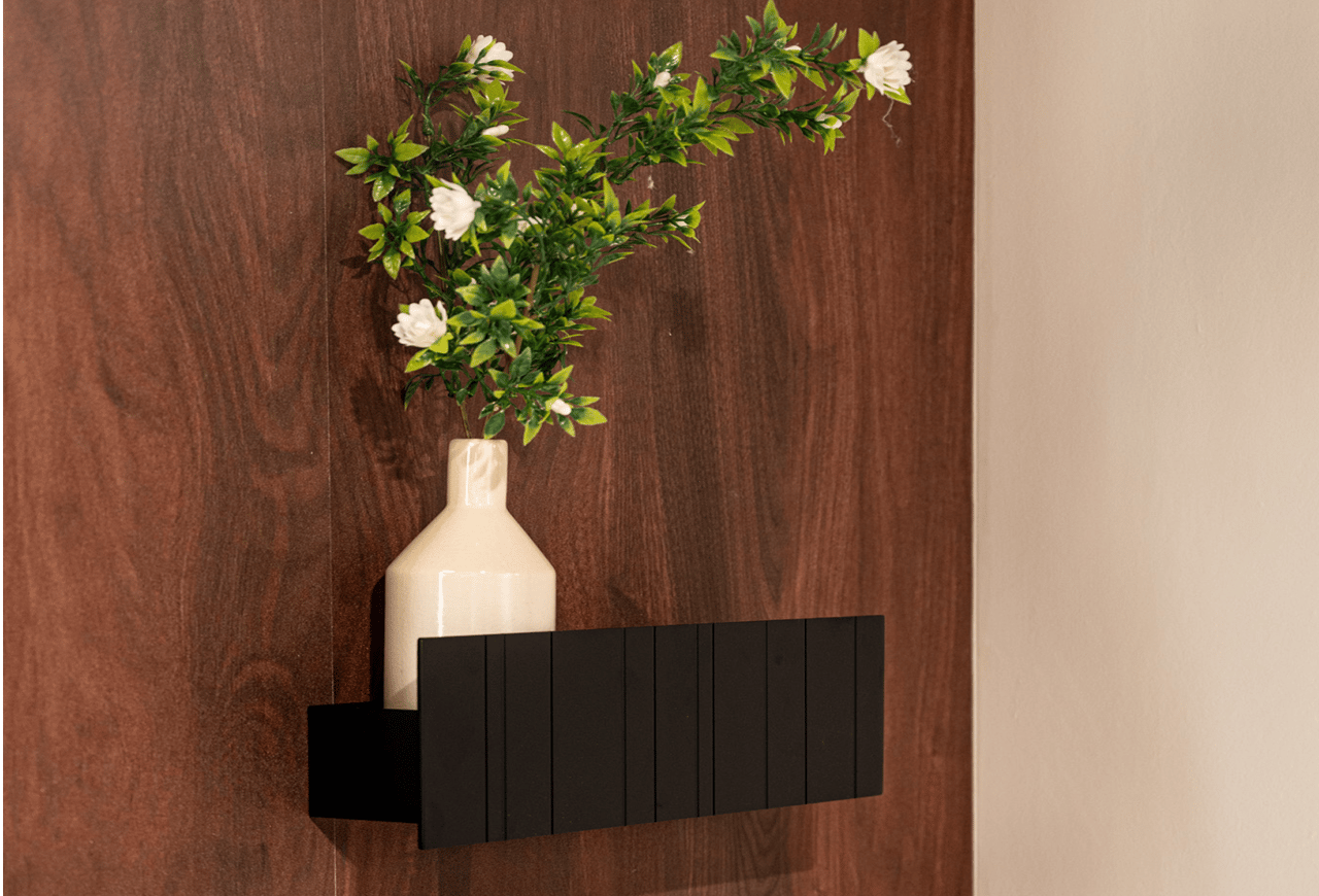 Bart koos resoluut voor een open gevoel in de doucheruimte. Een glazen douchewand en een witte douchebak zorgen voor een heldere, lichtrijke douche-ervaring. Tegelijk brengen strakke, zwarte lijnen en zorgvuldig uitgekozen details — zoals de zwarte inbouw regendouche en wandplank — extra karakter in het geheel. Zo bewijst Bart eens te meer zijn gevoel voor verfijning en perfectie. De douchewandpanelen in travertinlook geven de doucheruimte een warme touch.