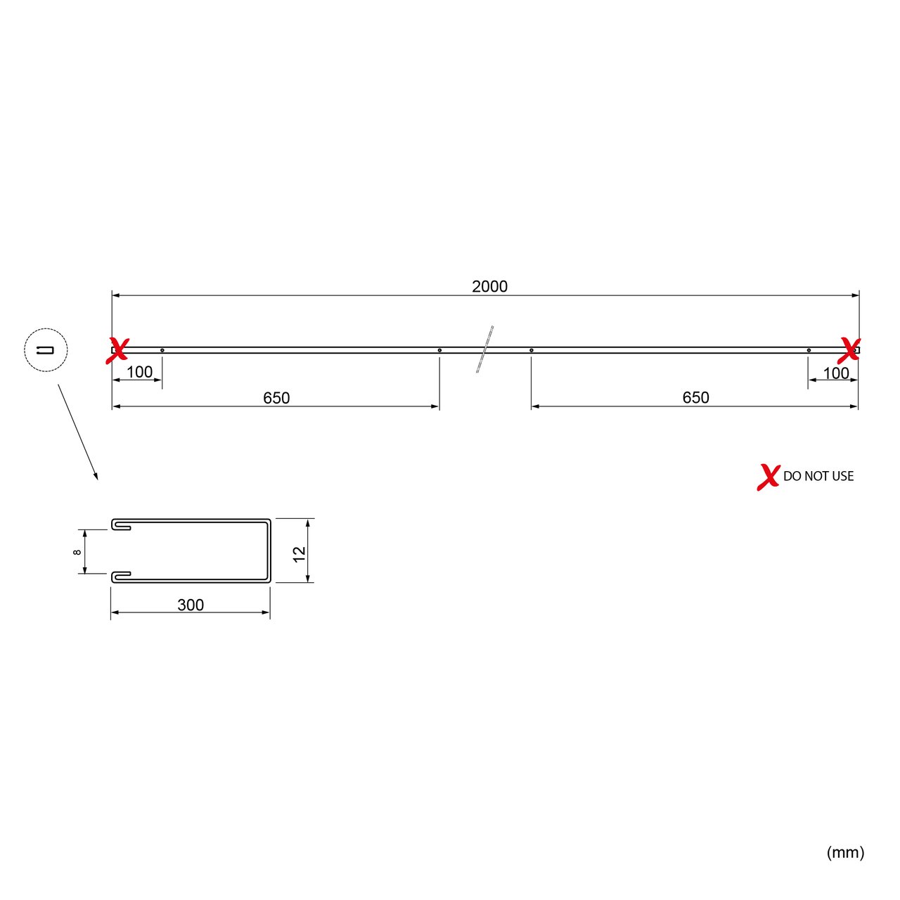 Dit muurprofiel is 200 cm lang en 3 cm breed.
