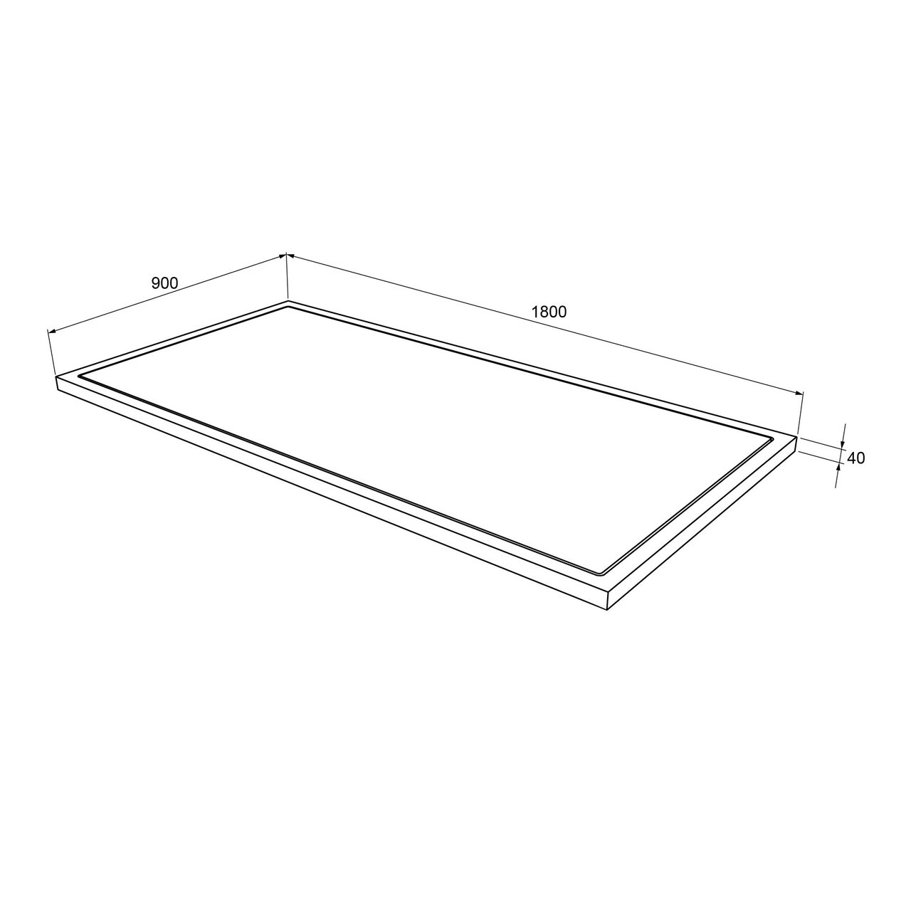 Deze douchebak is 90 cm breed op 180 cm lang.