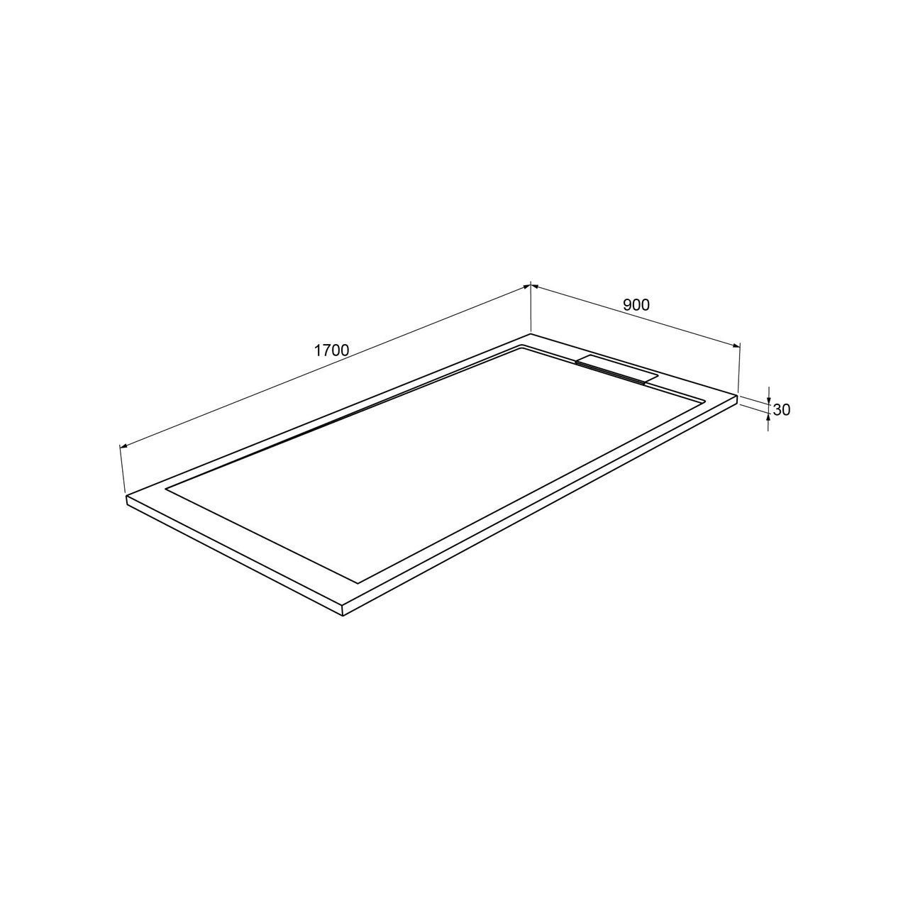 Deze douchebak is 90 cm breed op 170 cm lang.