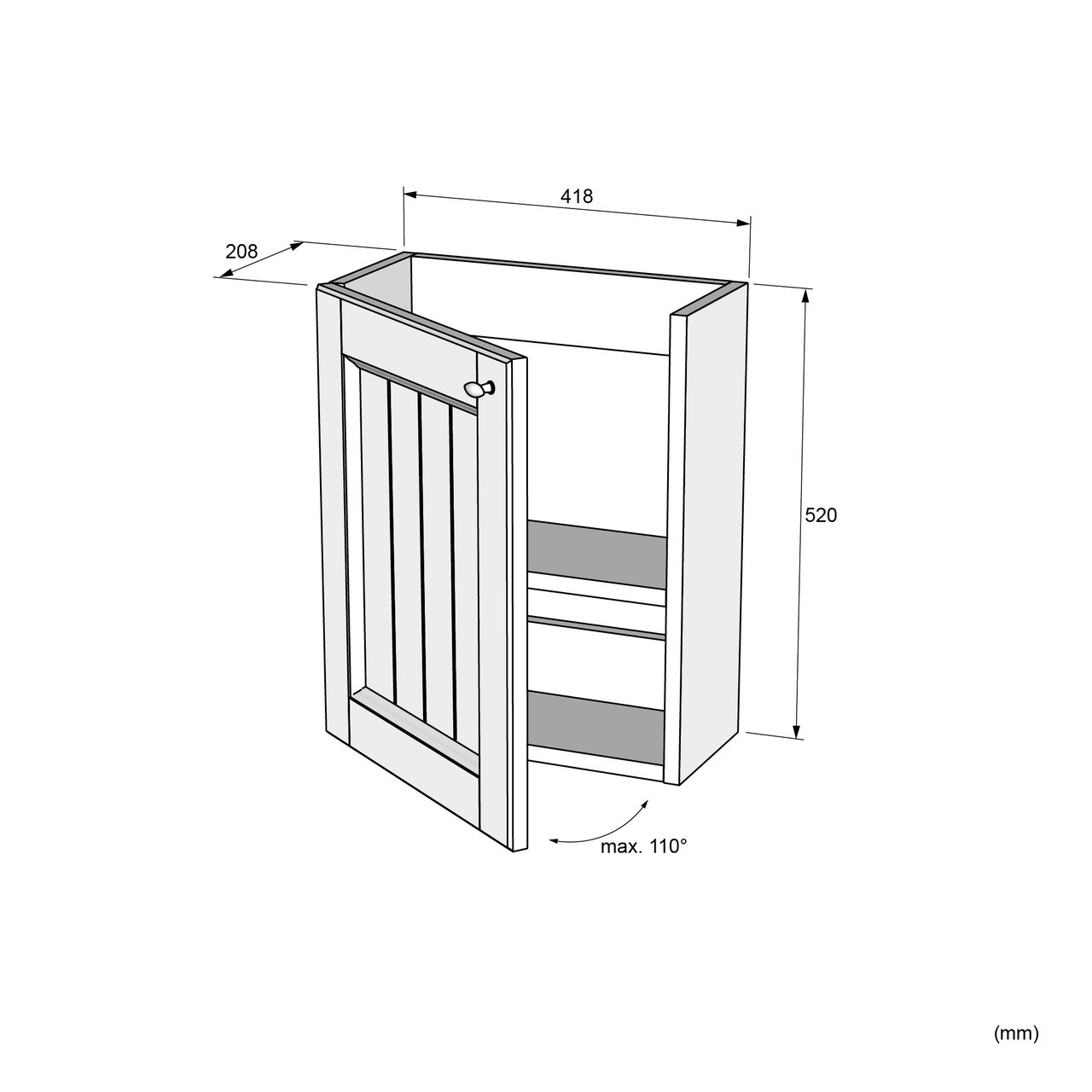 Deze eersteklas eiken fineer toiletmeubelkast met 1 draaideur heeft een breedte van 42 cm, een hoogte van 52 cm en een diepte van 21 cm. Deze zwevende kast in natuur eik past in elke modern landelijke toiletruimte door zijn rustieke uitstraling.