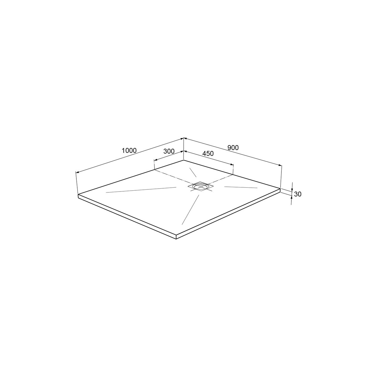 Deze douchebak is 90 cm breed op 100 cm lang.