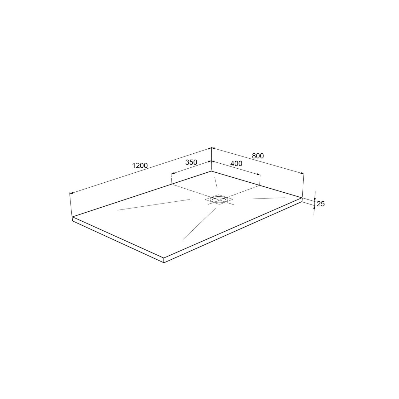 Deze douchebak is 80 cm breed op 120 cm lang.