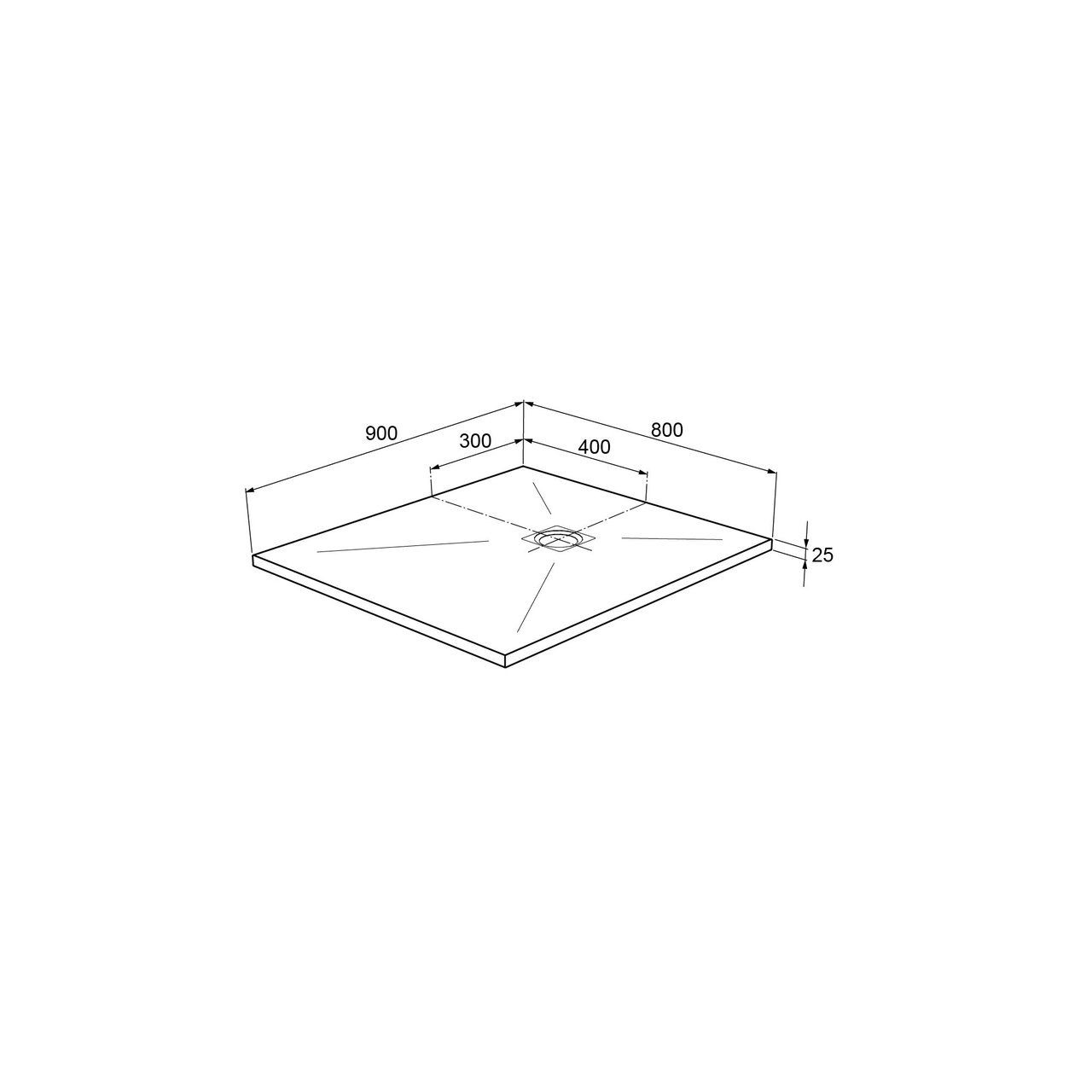 Deze douchebak is 80 cm breed op 90 cm lang.