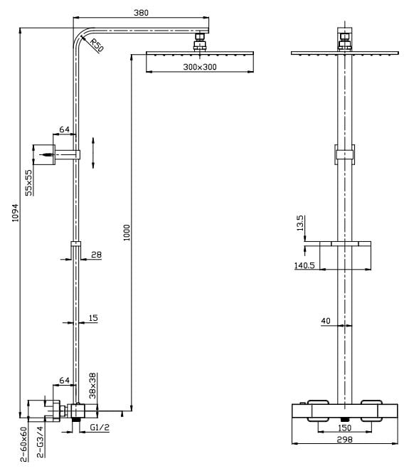 Belangrijkste specificaties:-  Regendoucheset met thermostatische douchekraan