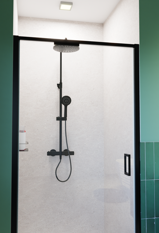 ✔ Een nisdouche met zwarte douchedeur maakt het geheel volledig af