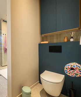 ✔ Harmonie in materialen – Van geglazuurde wandtegels tot houtaccenten in accessoires.