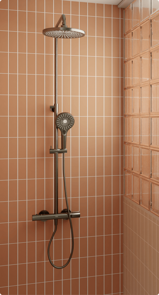 In de douchezone zorgen de tegels voor een warm detail met een verrassend “retro” effect. De ruime Luca Varess Classy douchebak van 140 x 90 cm biedt comfortabel douchegemak. De Blaufoss Onos regendoucheset in de PVD-kleur GunMetal voegt een moderne touch toe en zorgt voor een aangename waterstraal. Dankzij de thermostatische kraan stel je eenvoudig de juiste temperatuur in.