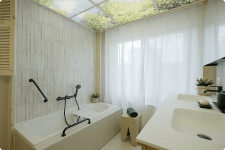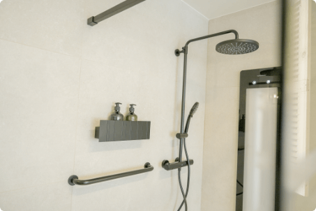 Een nieuwe badkamer was een logische keuze. Het oude bad was te hoog voor Bonnie, er was geen toilet op de bovenverdieping en ook geen aparte douche. De vernieuwde badkamer biedt nu alles wat haar grootouders nodig hebben: de ruime Balmani Modular inloopdouche, een handig toilet en moderne voorzieningen die zowel stijlvol als praktisch zijn.