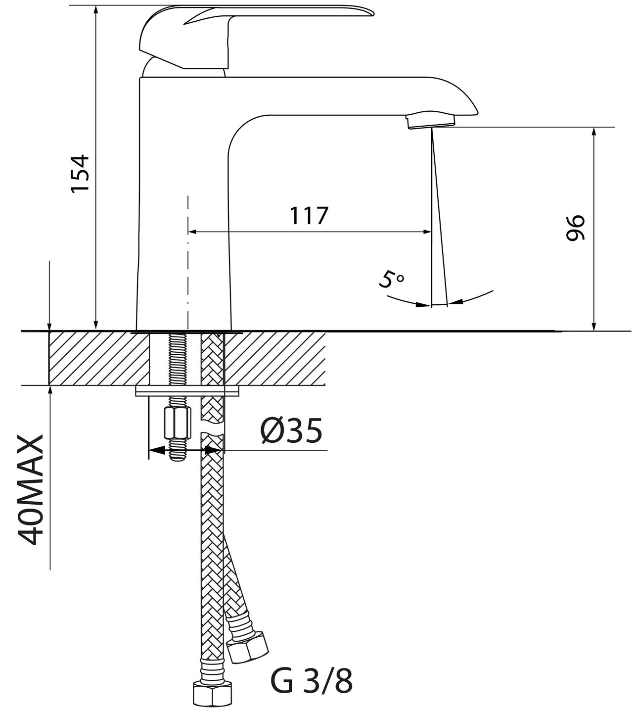 Max. tabletdikte voor kraaninstallatie | 40 mm | |